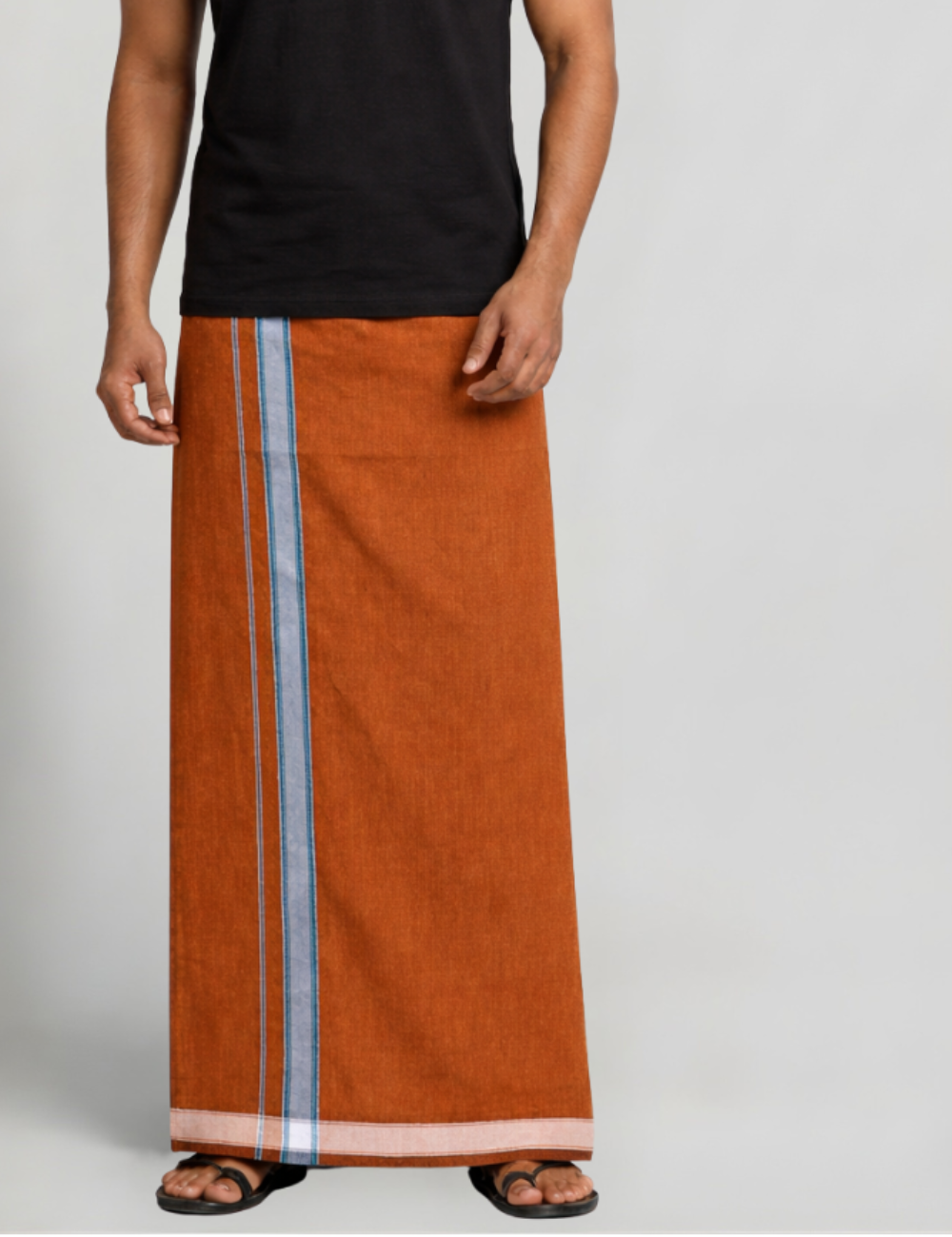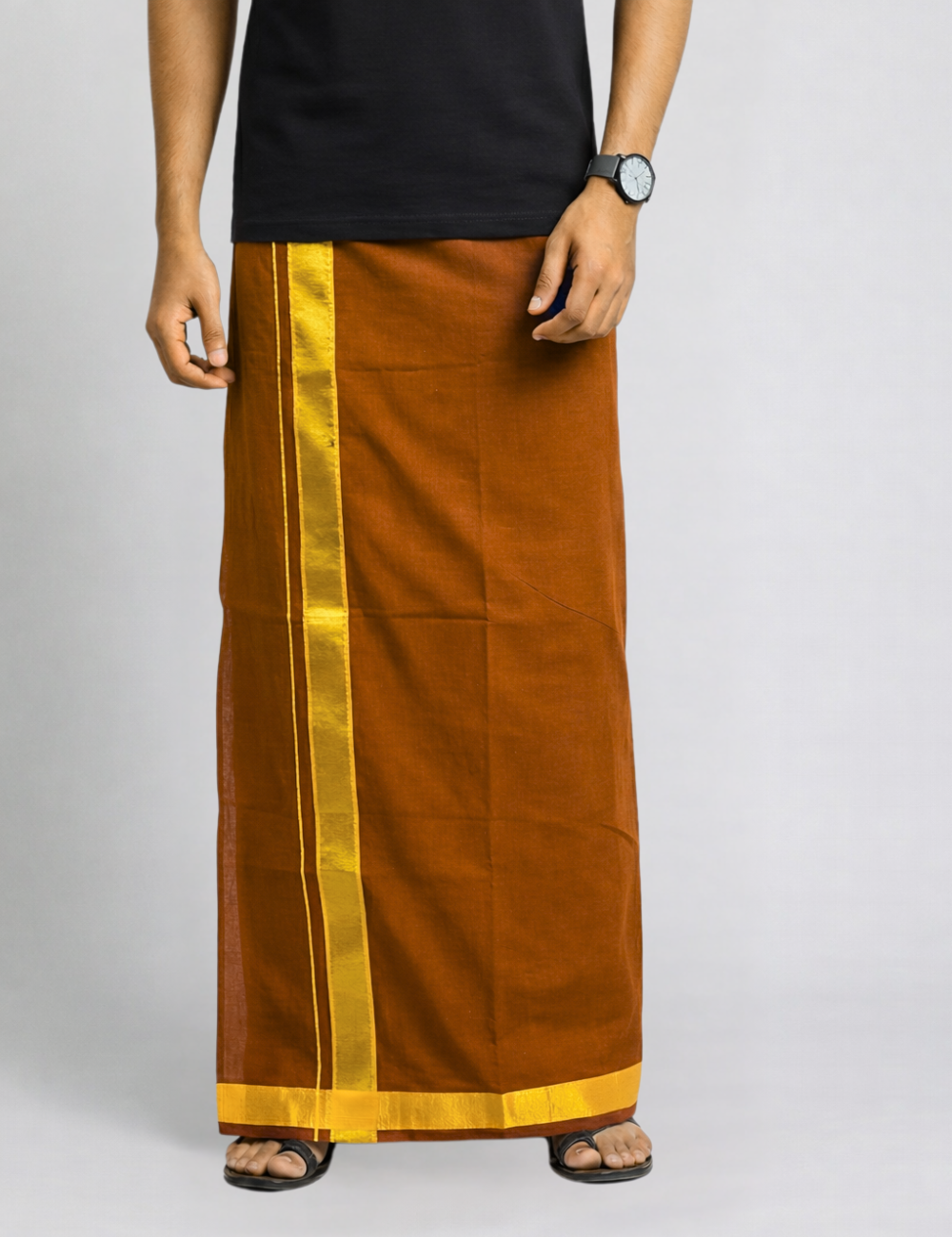 Rust Brown Jari Border Cotton Blend Single Layer Dhoti β Rajamanikkam Edition