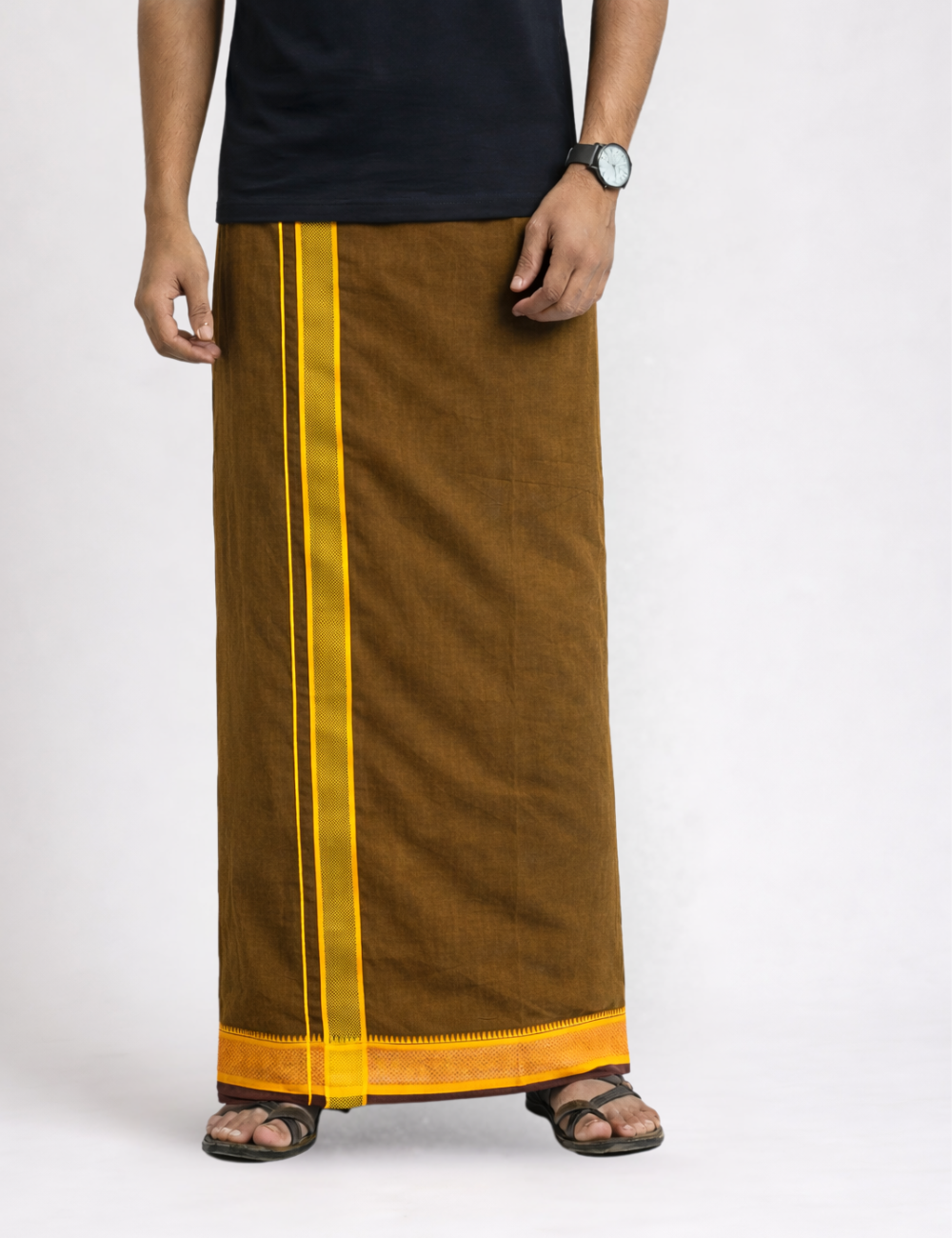 Black T-Shirt + Brown Colour Dhoti Combo | Daily Wear South Indian Style Set for Men