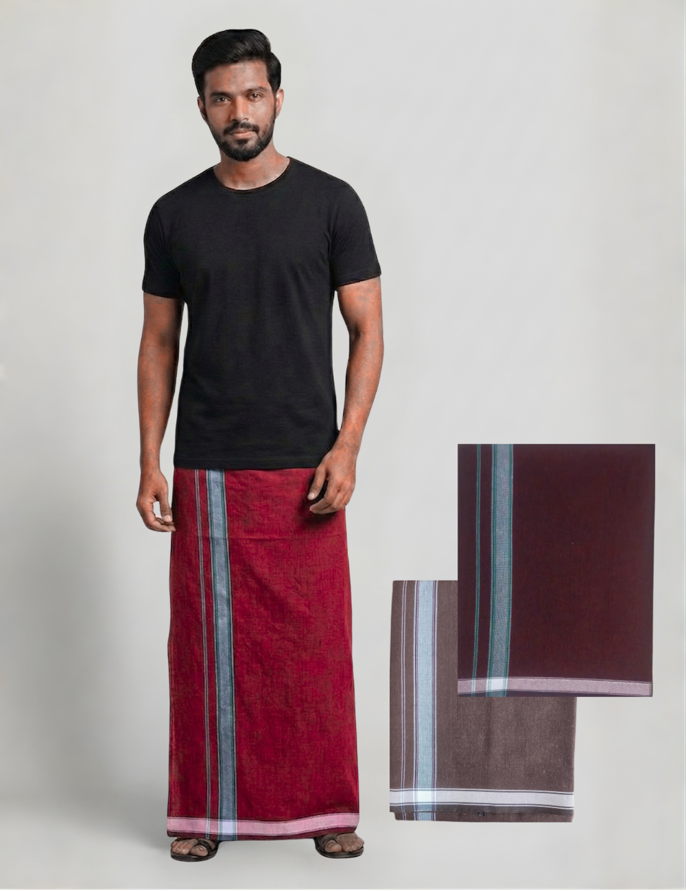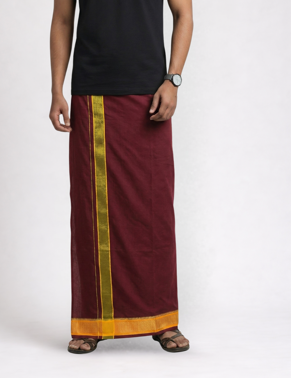 Black T-Shirt + Deep Maroon Colour Dhoti Combo | Daily Wear South Indian Style Set for Men