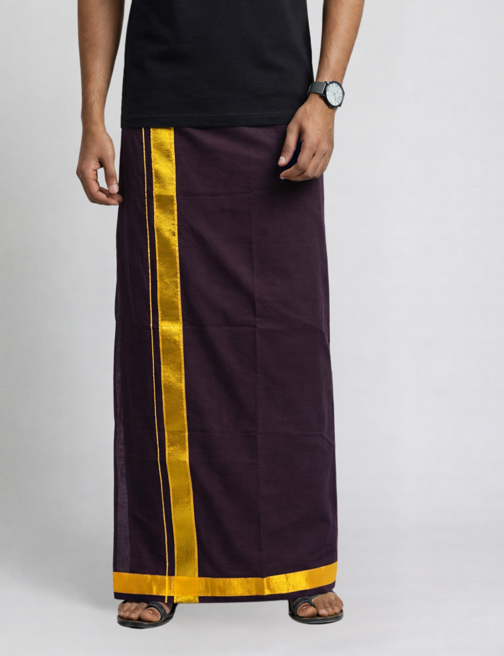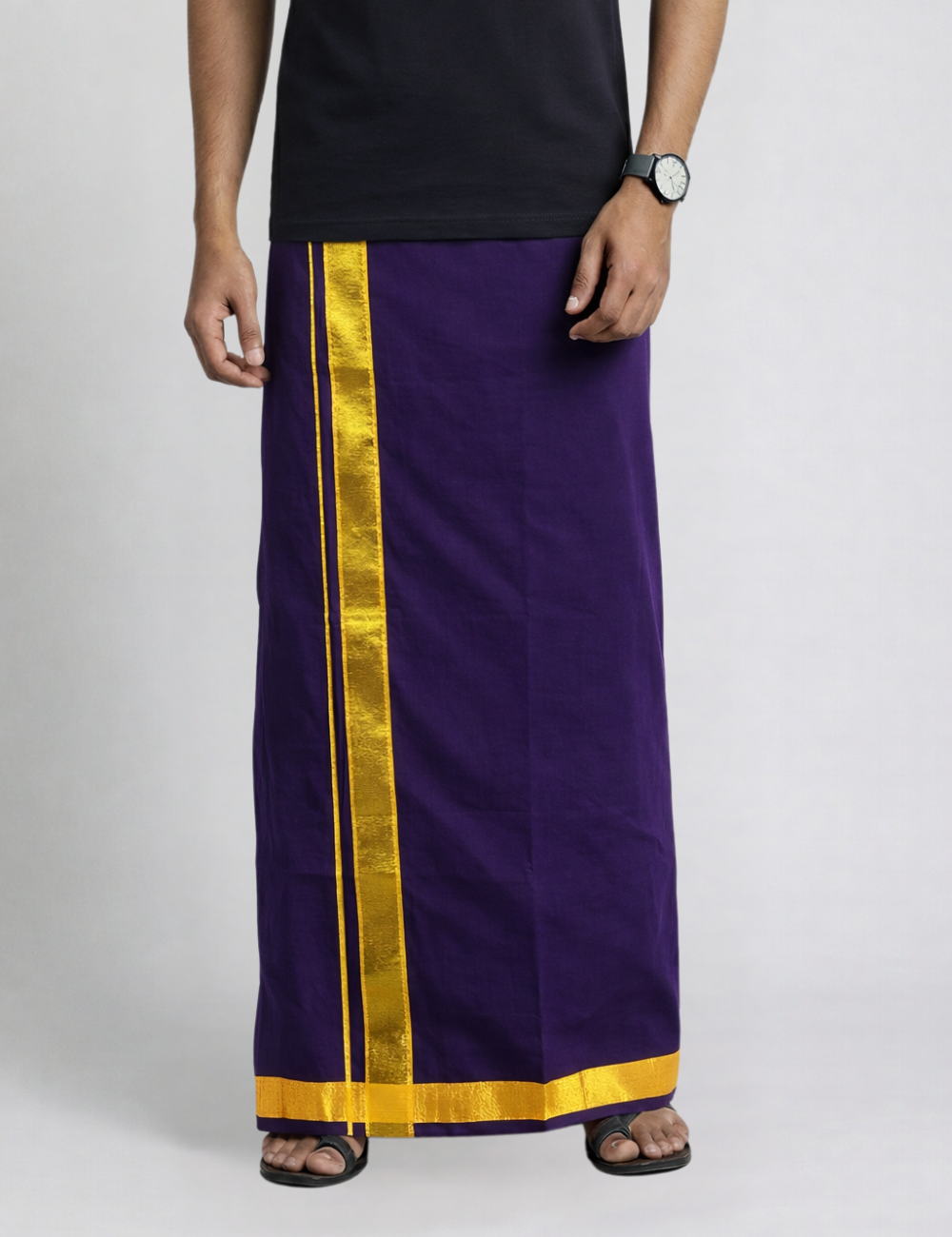 Dark Purple Jari Border Cotton Blend Single Layer Dhoti β Rajamanikkam Edition