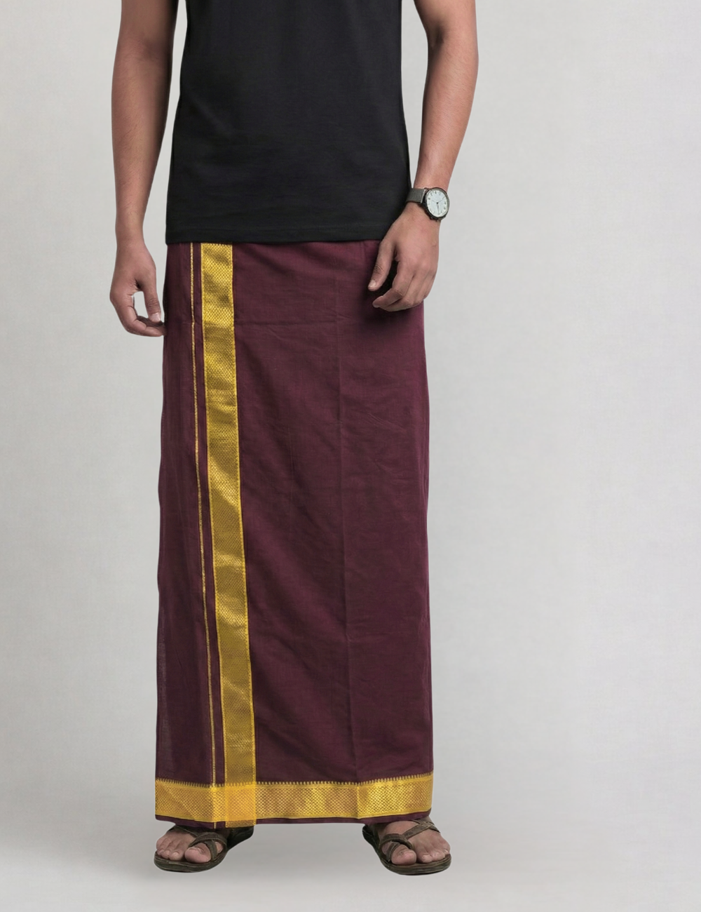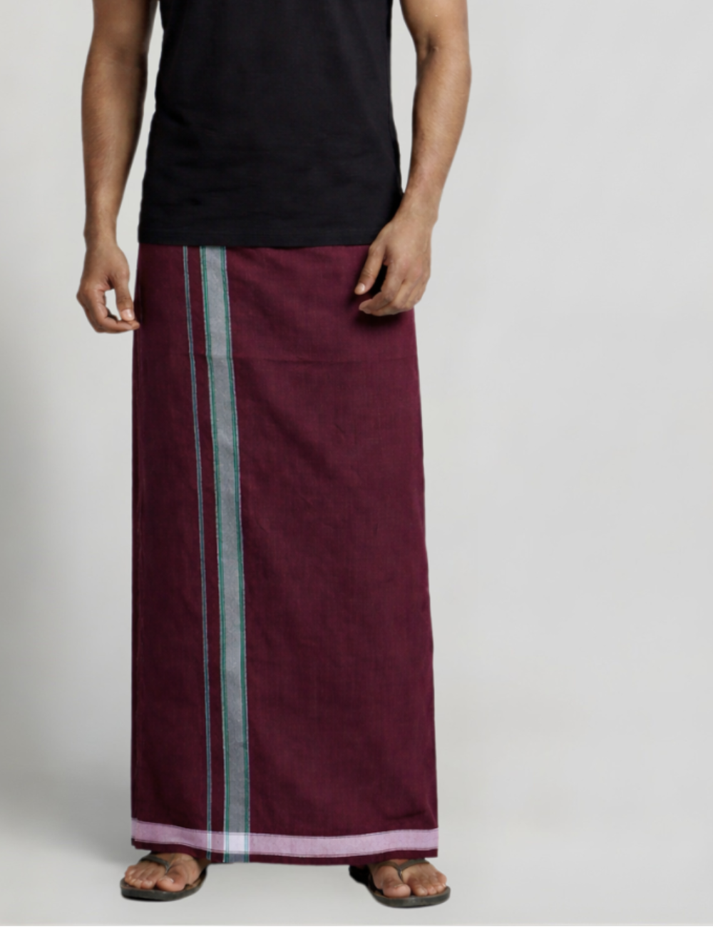 Burgundy Jari Border Cotton Blend Single Layer Dhoti β Padayappa Design