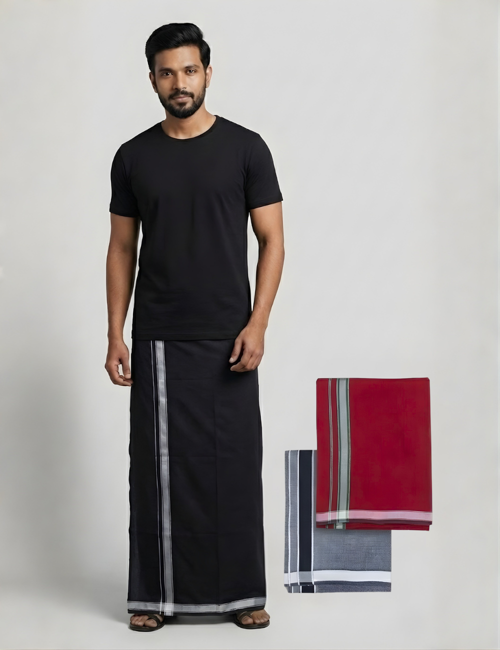 Everyday Essentials Combo β Black T-Shirt with 3 Cotton-Blend Dhotis