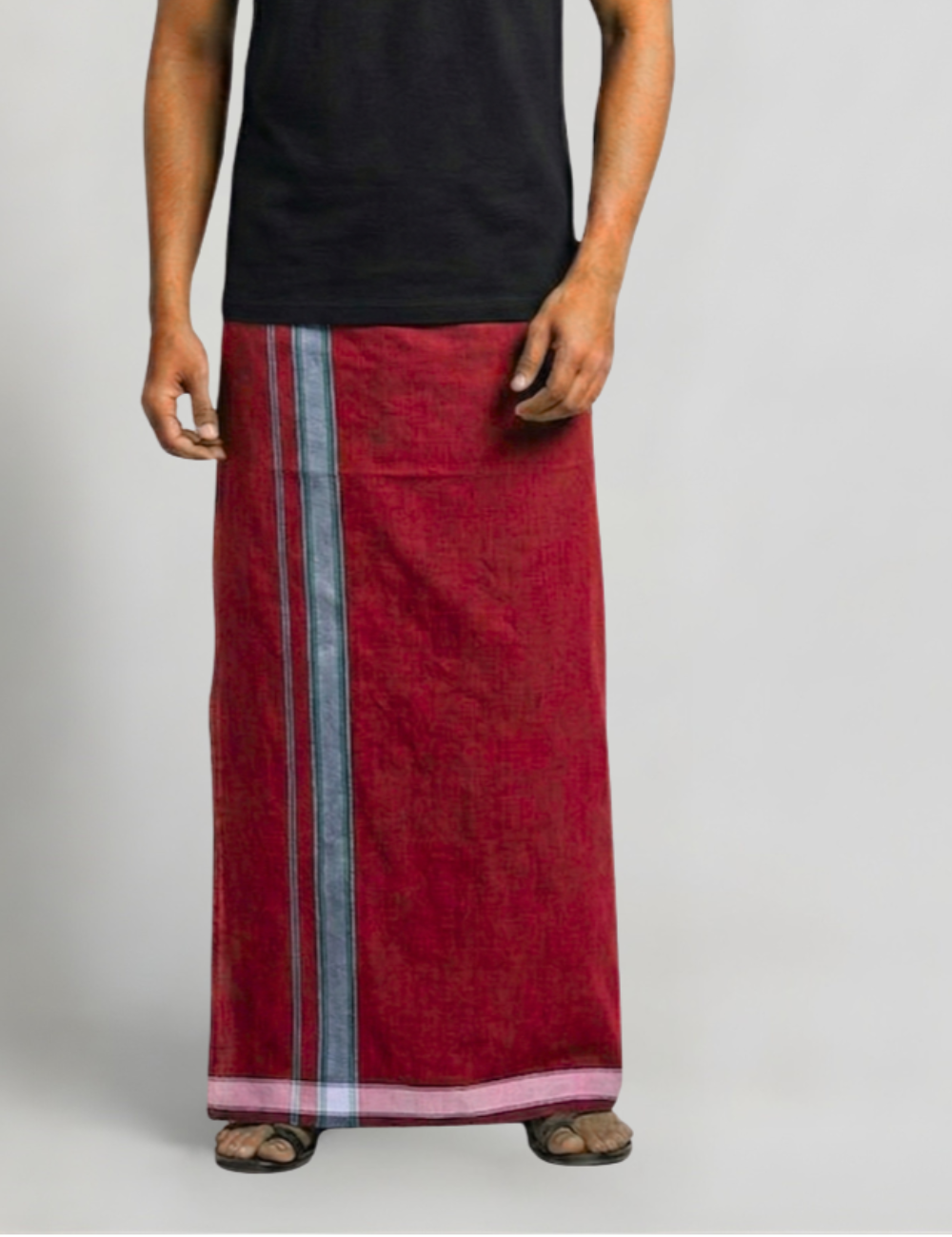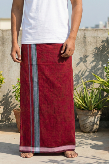 Deep Maroon Cotton Blend Single Layer Dhoti With Fancy Borderβ Daily Wear