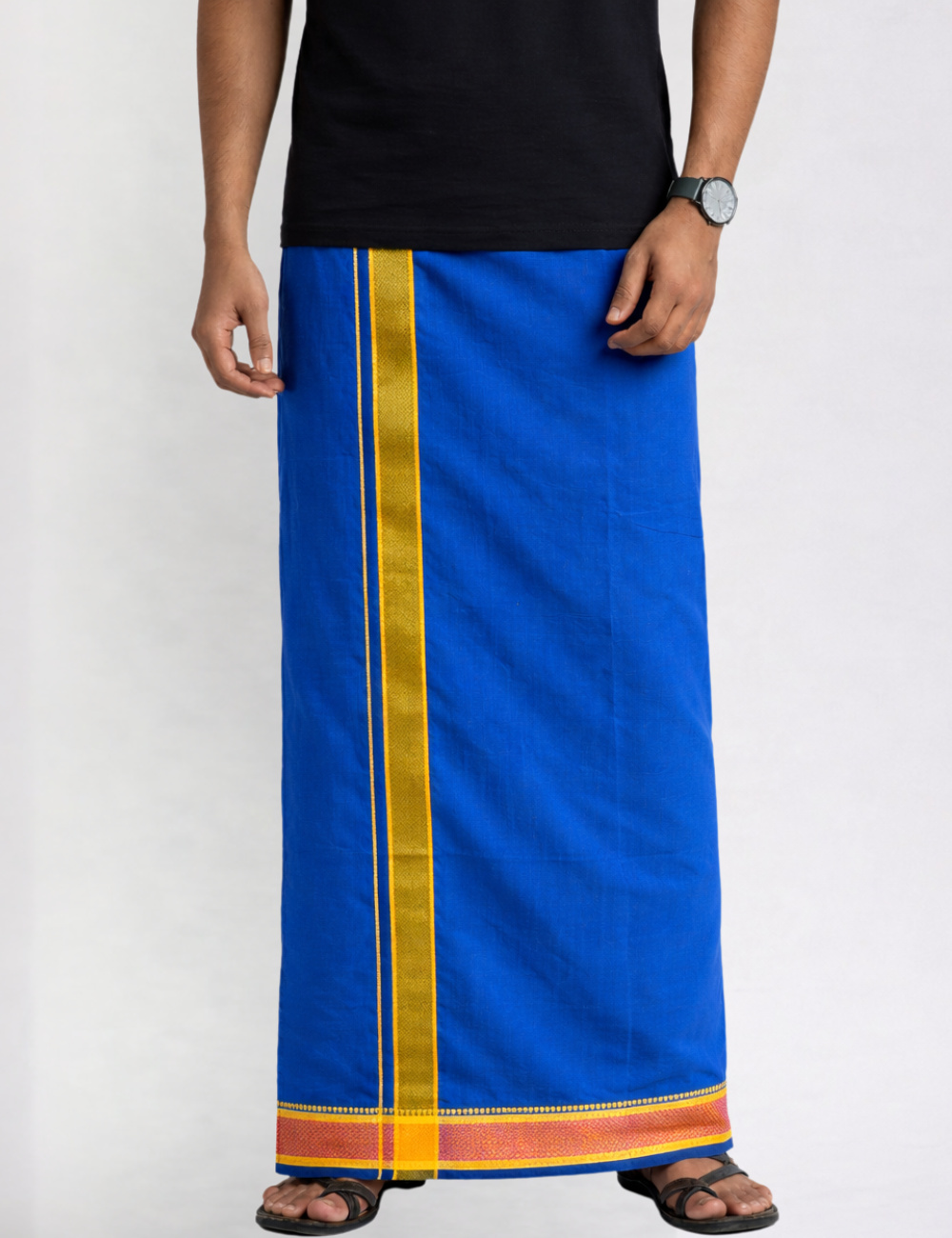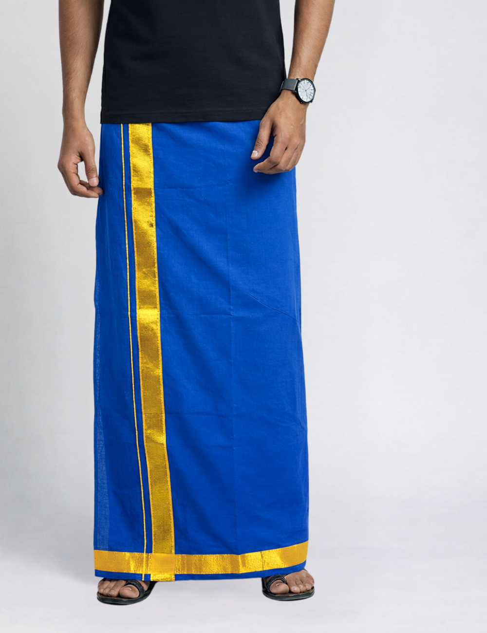 Royal Blue Jari Border Cotton Blend Single Layer Dhoti β Rajamanikkam Edition