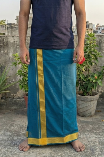 Royal Blue Jari Border Cotton Blend Single Layer Dhoti β Padayappa Design