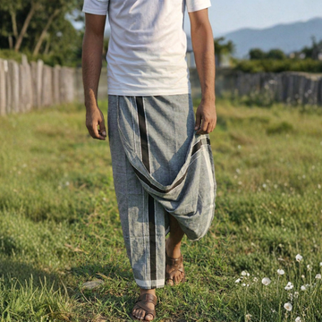 Grey Cotton Blend Single Layer Dhoti With Fancy Borderβ Daily Wear