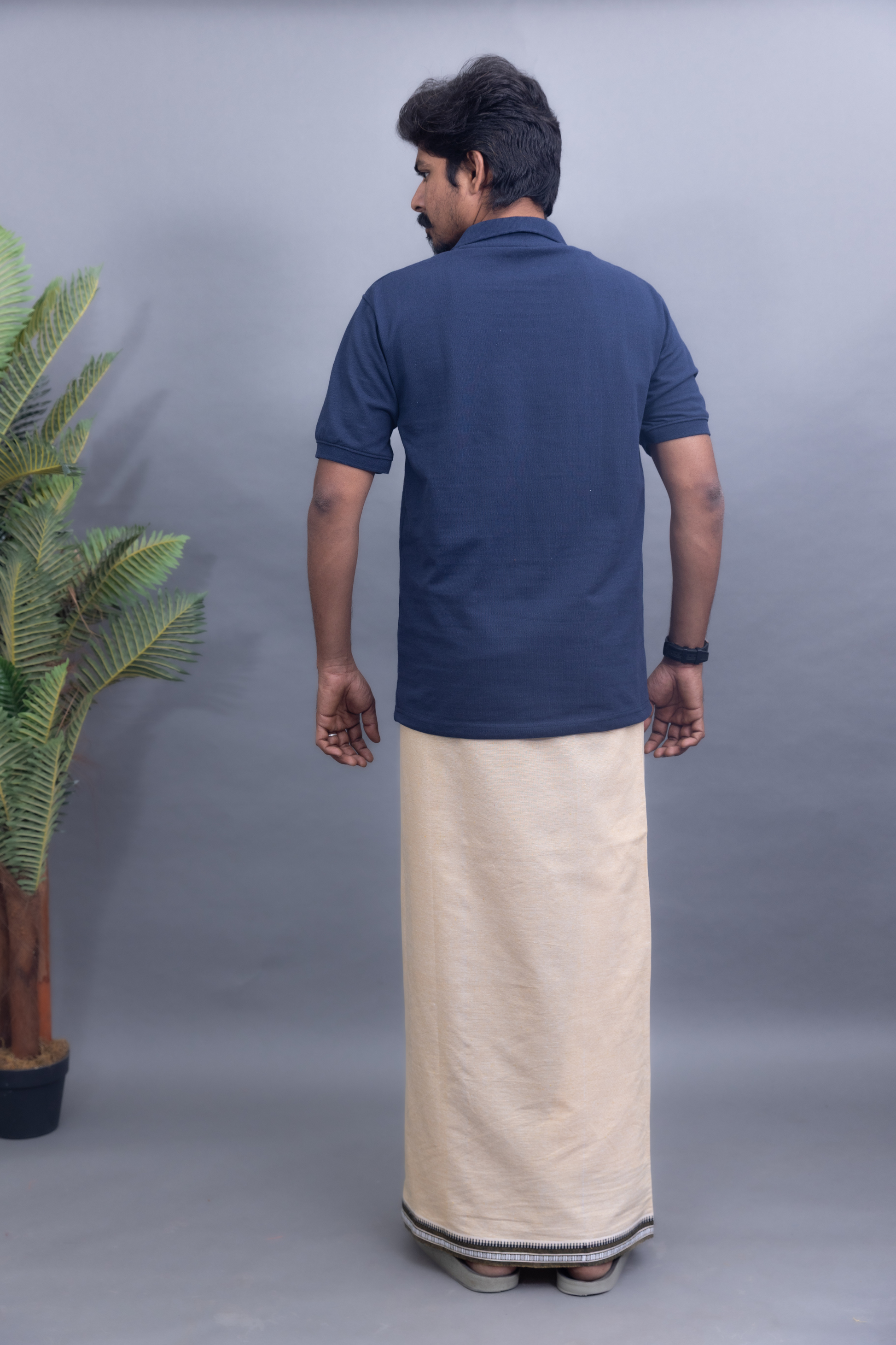 Experience the perfect blend of tradition and modern style with the RIDFUZ Navy Blue T-Shirt & Sandal Colour Cotton Dhoti Combo. Designed for the new generation, this combo makes wearing a men’s dhoti (veshti / mundu) simple, comfortable, and stylish for everyday life.